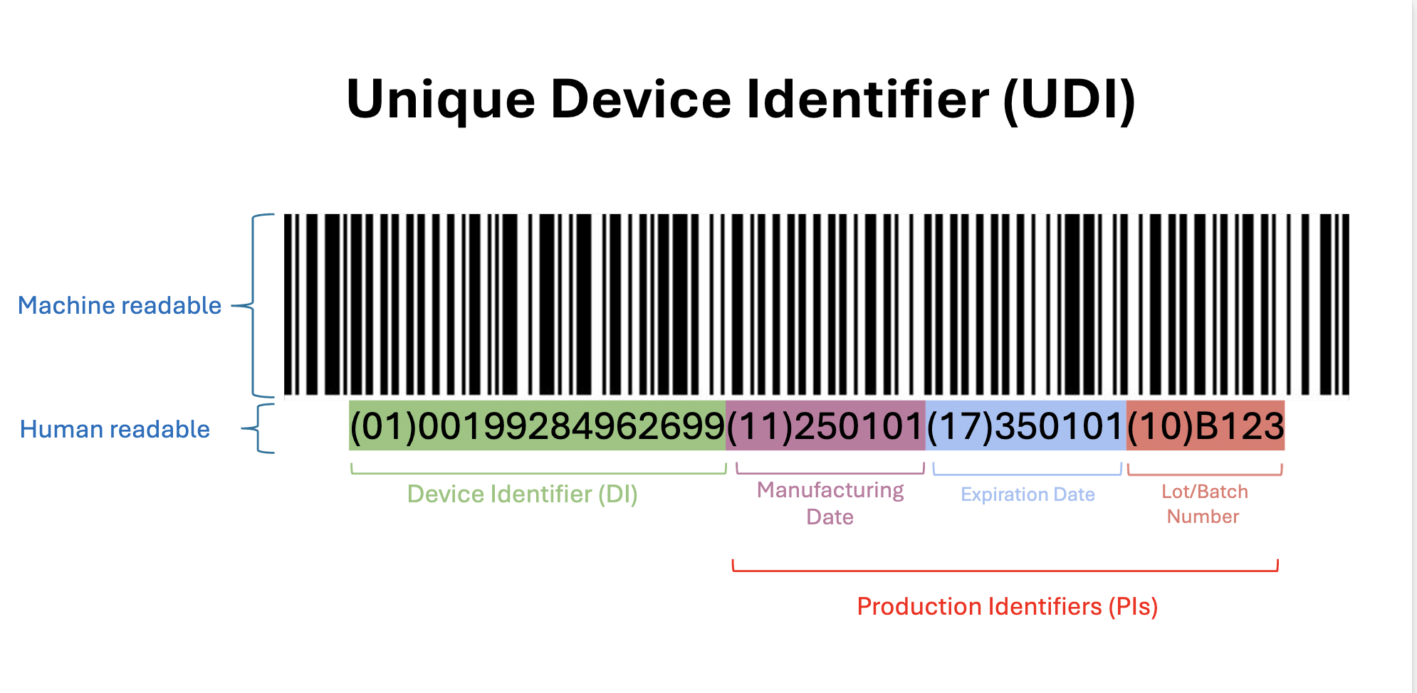 UDI is a unique numeric or alphanumeric code composed of the following: