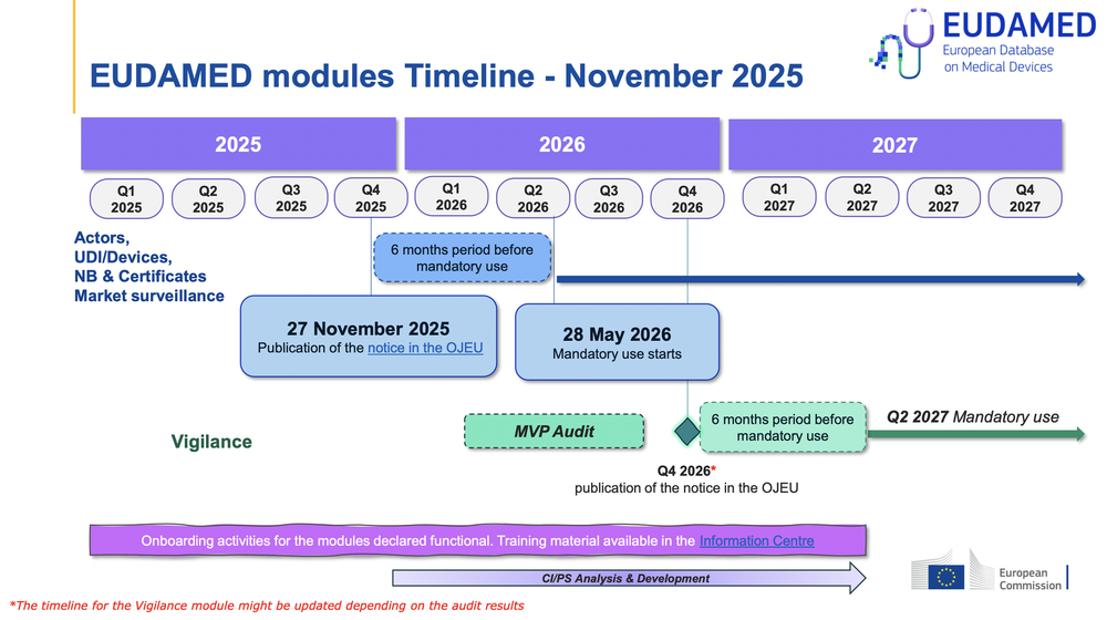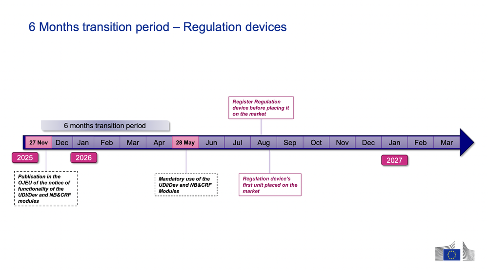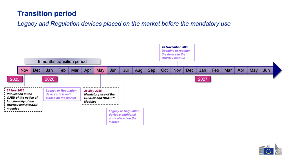 This means that starting May 28th, 2026, the first four EUDAMED modules listed above will be mandatory, following the 6 month transition period.
